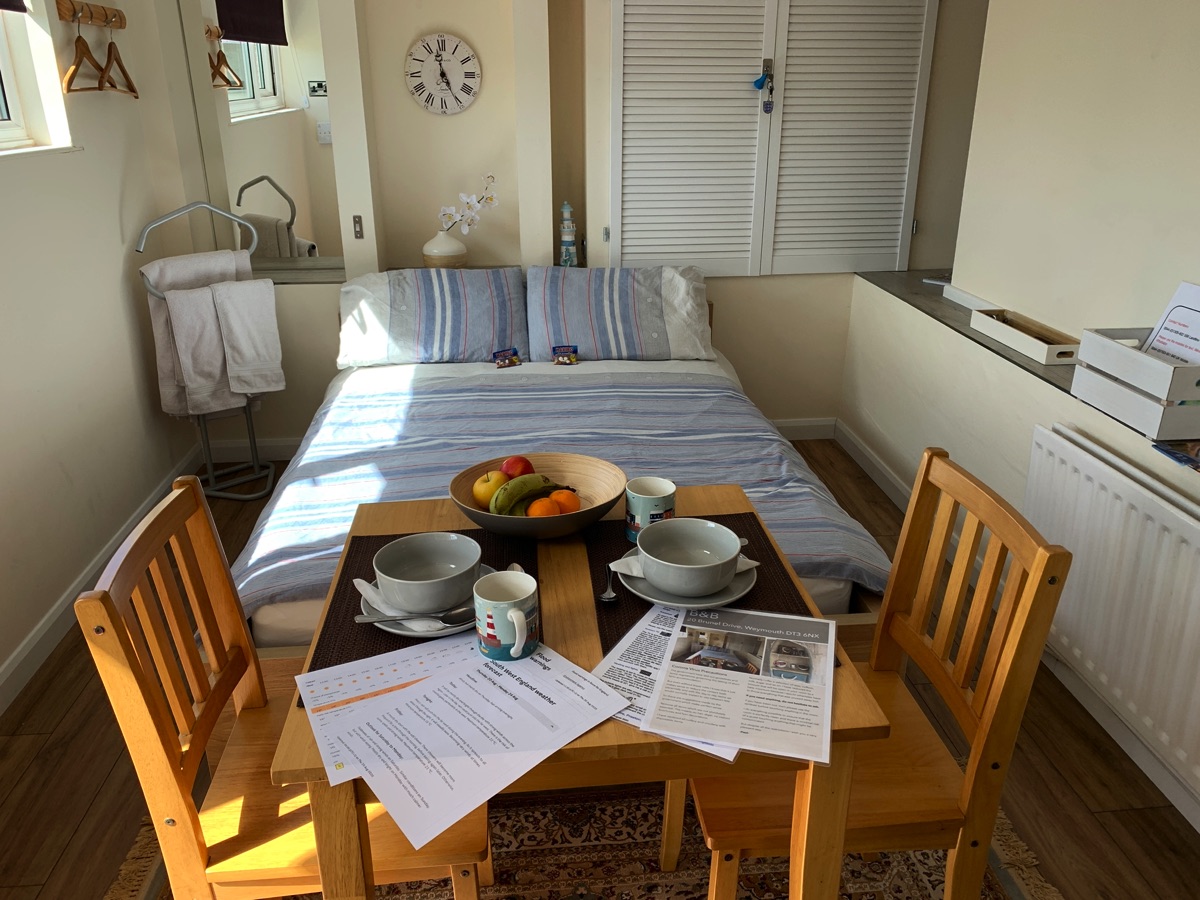 Even though we do not provide breakfast you will have ample tea and coffee to start your day. The room now has a fridge where you can keep milk or other drinks and food cool whilst here. Unfortunately we need to state that what we provide is for consumption wheil you are staying here.