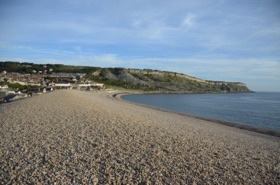 Past St. Catherine's Chapel, Abbotsbury, the Subtropical Gardens, until it reaches West Bay, just south of Bridport. Officially a Tombolo.